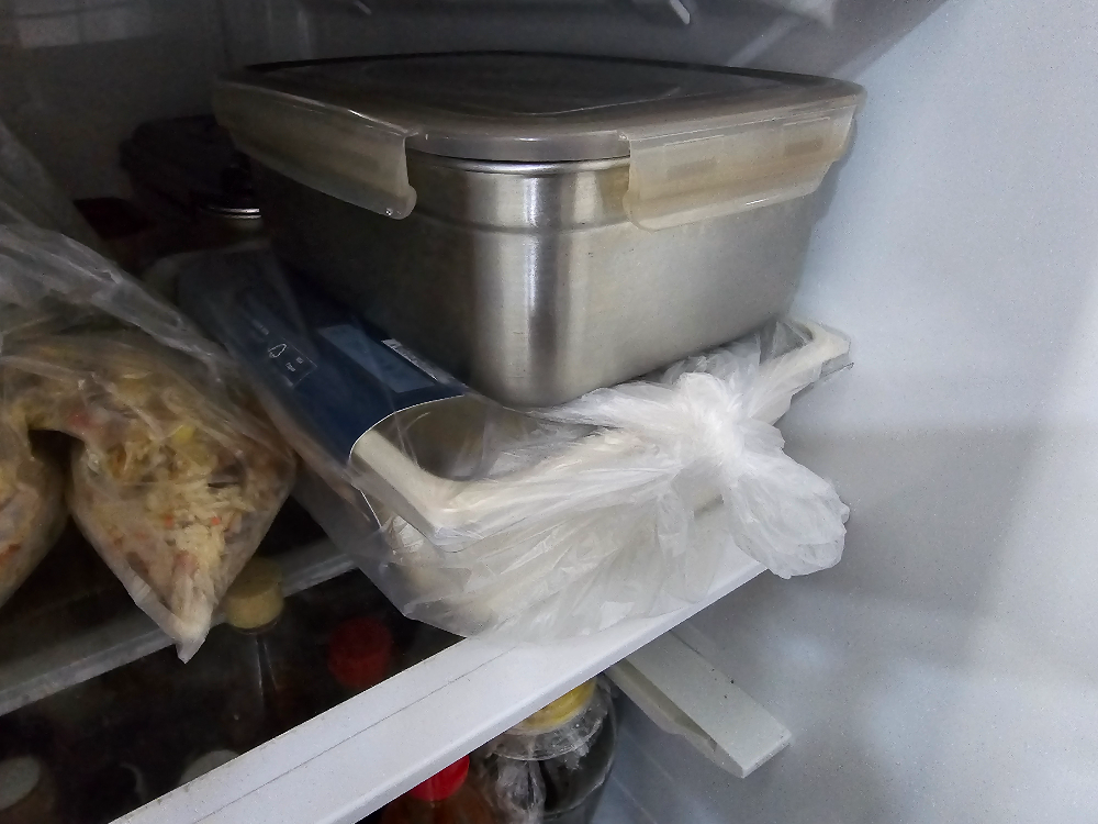 3. 썰린 고기를 보관이 가능한 통에 넣어줍니다.